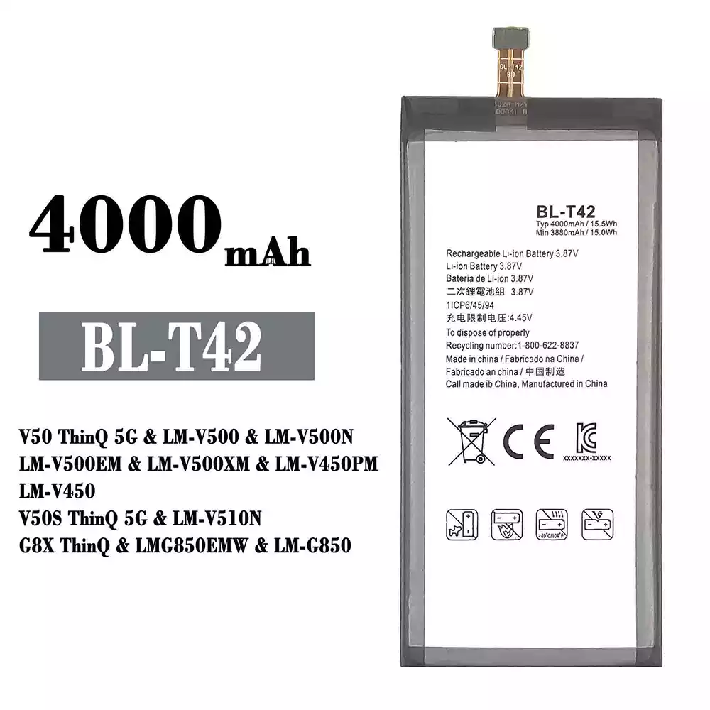 Batteria BL-T42 per LG V50 ThinQ 5G / LM-V500 / LM-V500N / LM-V500EM / LM-V500XM / LM-V450PM / LM-V450 / V50S ThinQ 5G / LM-V510N / G8X ThinQ / LMG85OEMW / LM-G850
