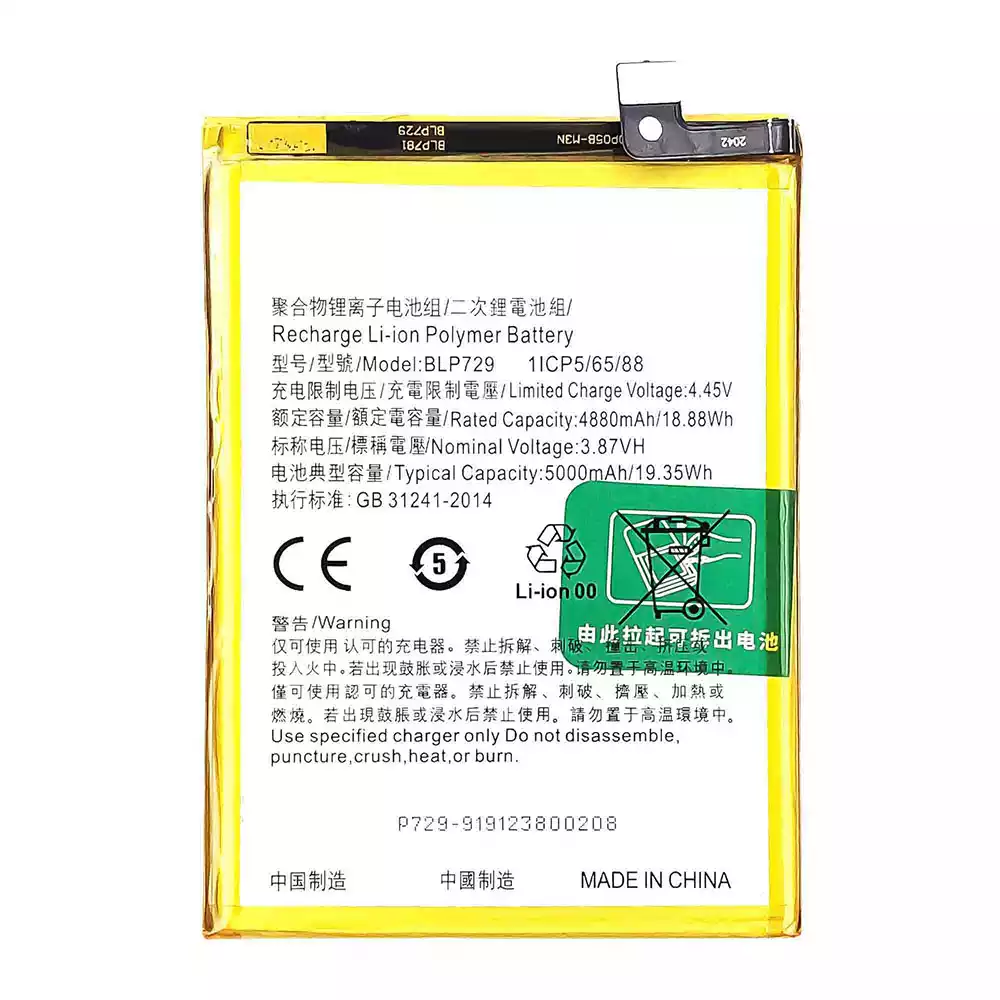 Batteria BLP729 per OPPO Realme 5 / Realme 5i / Realme 5s / Realme C3 / Realme C3 (3 cameras) / Realme C11 2020 / Realme C21 / Realme C21Y / Realme C20