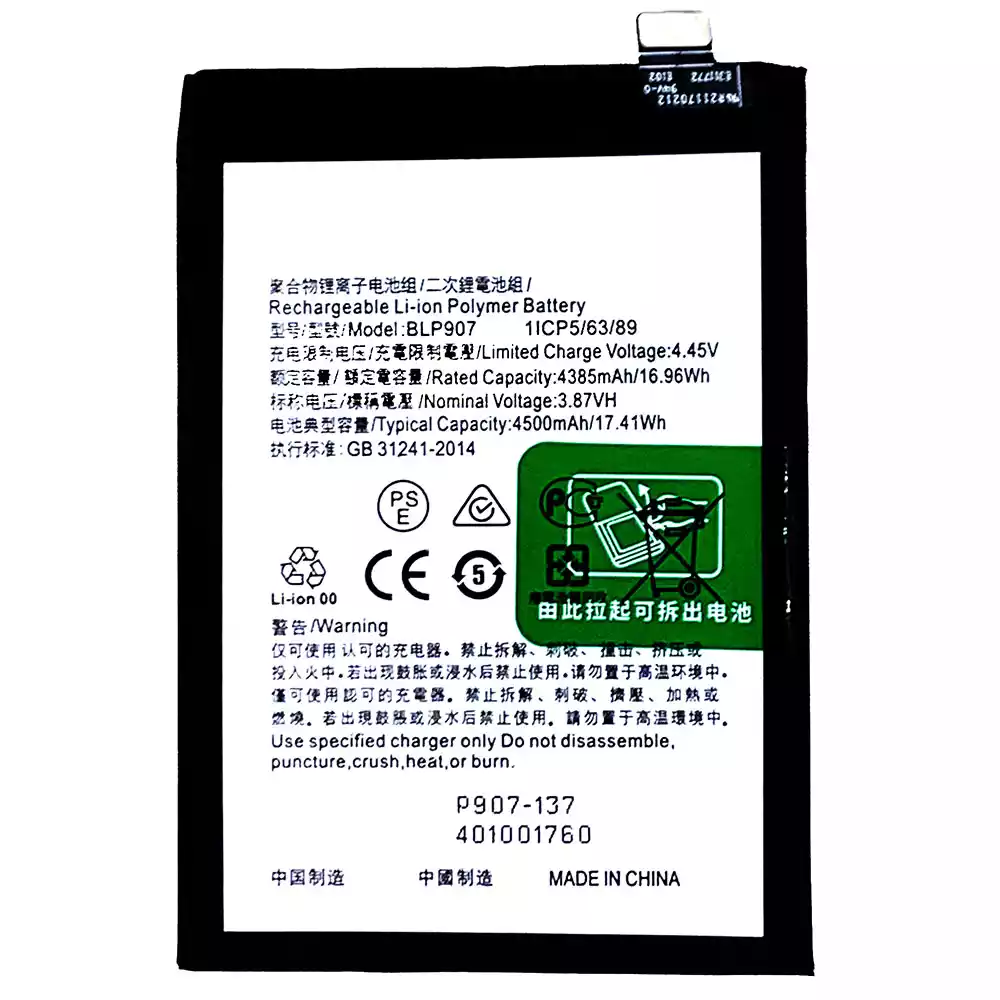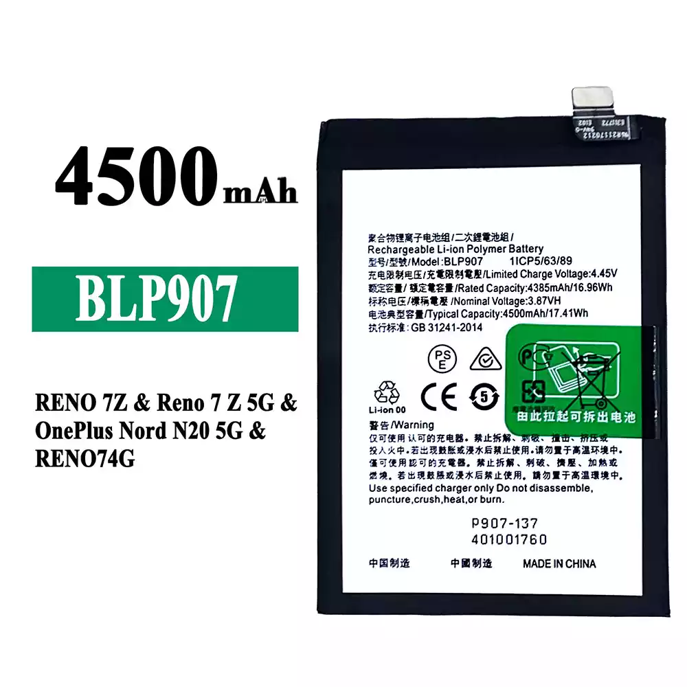 Batteria BLP907 per OPPO RENO 7Z / Reno 7Z 5G / OnePlus Nord N20 5G / RENO 74G / RENO 8 4G