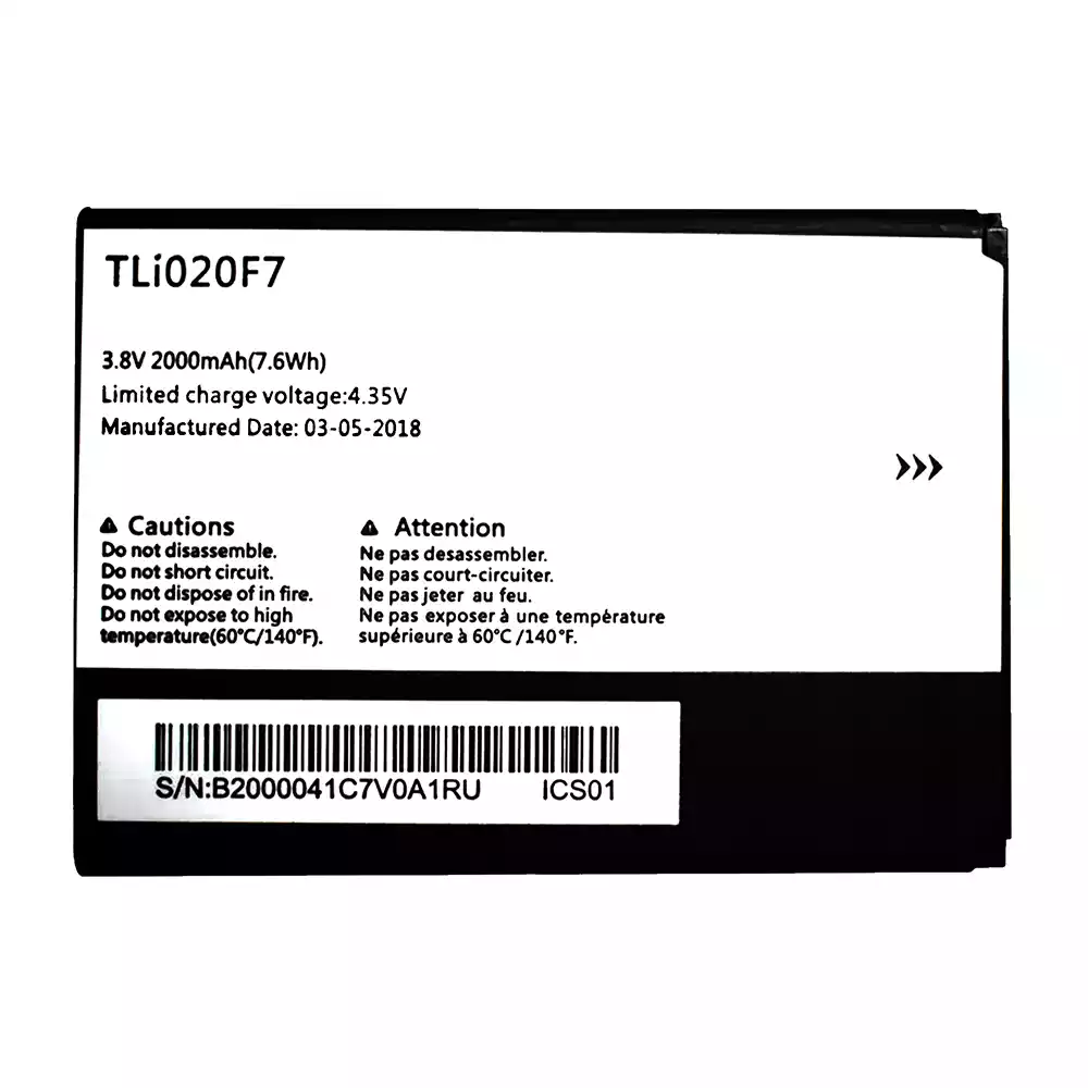 Batteria TLi020F7 per Alcatel PIXI 4 5045D/Pop 2/5042D/C7/7040/7040D/7041/7041D