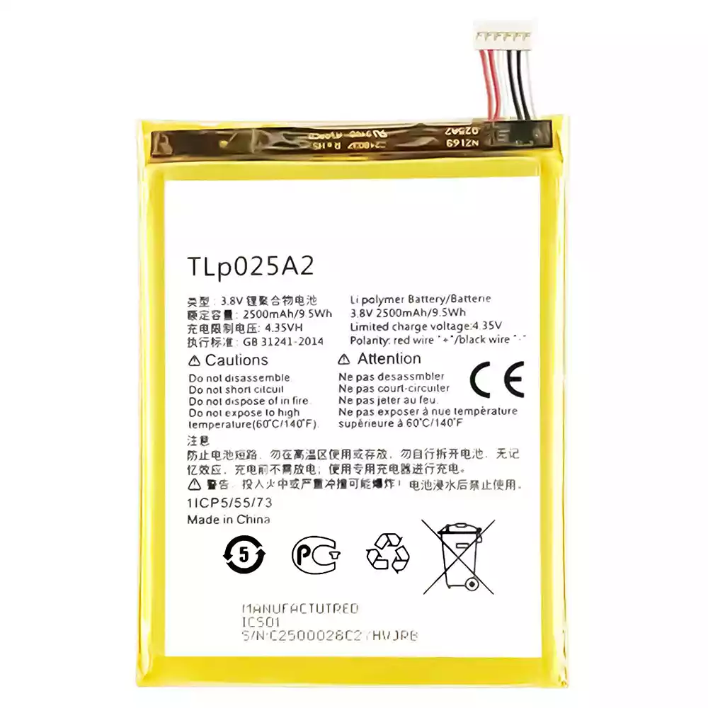 Batteria TLp025A2 per Alcatel Pop2 5.0 / Pop2 5.0 Premium Idol X+ / One Touch Idol X Plus / One Touch Scribe Easy / Pop C9 / One Touch Scribe HD / One Touch Scribe X