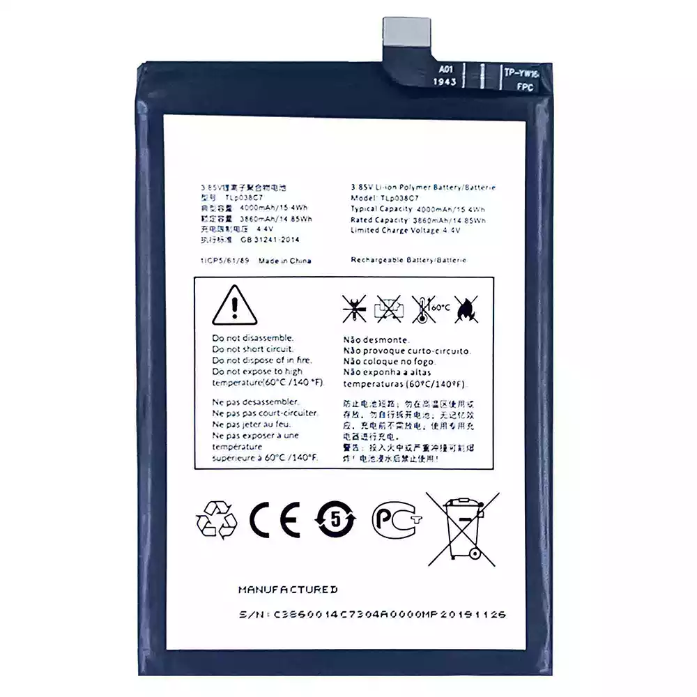 Batteria TLP038C7 per Alcatel 3X 2019/5048Y/5048A/5048Y_EEA/5048I/5048U_EEA/5V/5060D/5060A/5060J